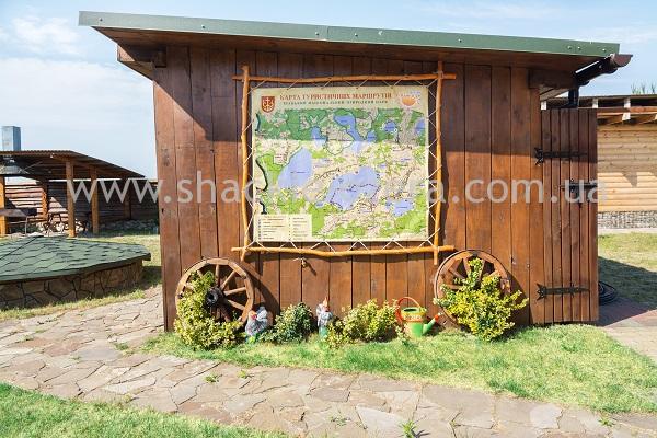 Территорию и коттеджи вы сможете просмотреть в режиме 3D тур у нас на сайте shatskie-ozera.com.ua