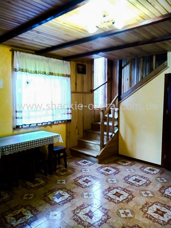 Первый этаж: Гостиная-кухня (раскладной диван, телевизор со спутниковым телевидением, электроплита, вытяжка, мойка, посуда).